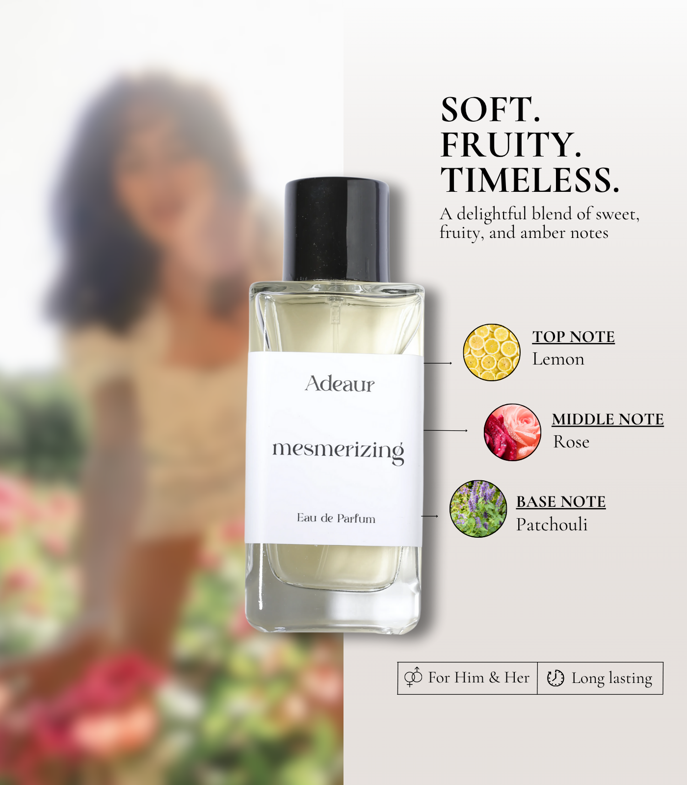 Mesmerizing is a delightful blend of sweet, fruity, and amber notes. This enchanting fragrance captivates with its playful and alluring scent profile. Since it leaves a lasting impression with its warm and inviting aroma, Mesmerizing is perfect for those who love a touch of sweetness.